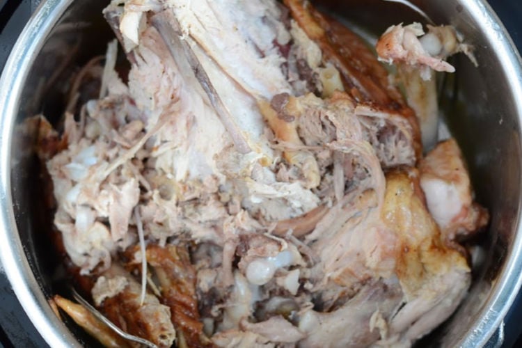 Add onion, celery, a carrot or two, and any seasonings you like, cover your turkey bones with filtered water, then let your broth simmer for at least 6 to 8 hours on the stovetop or in a slow cooker.